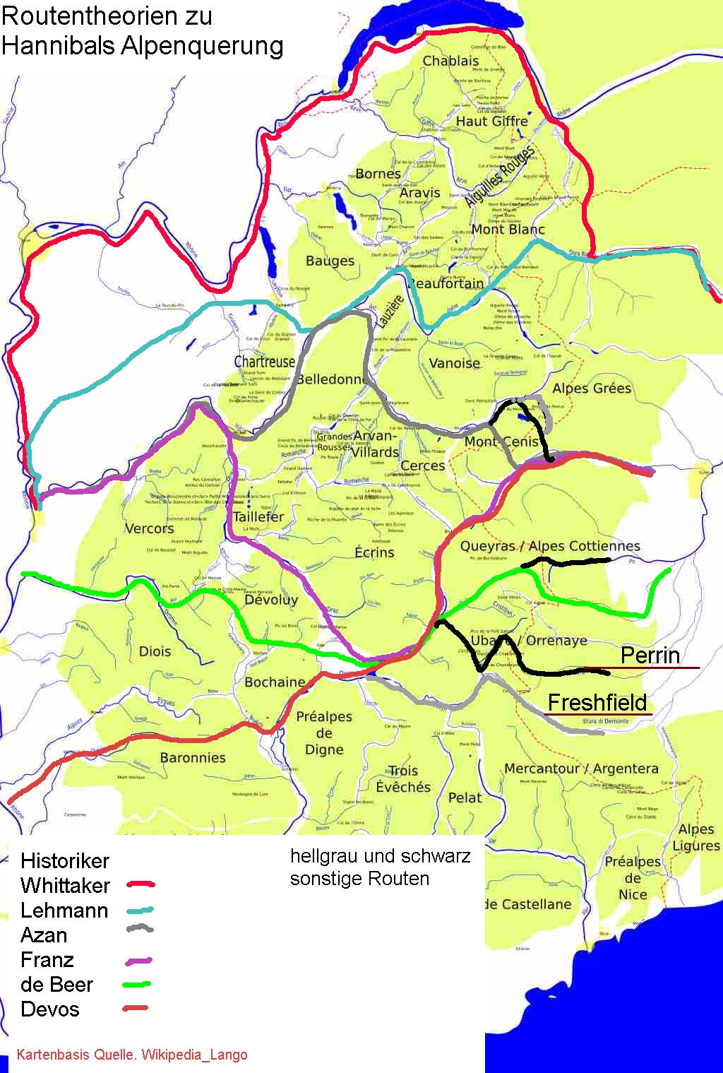 Routentheorien verschiedener Historiker zu Hannibals Alpenquerung