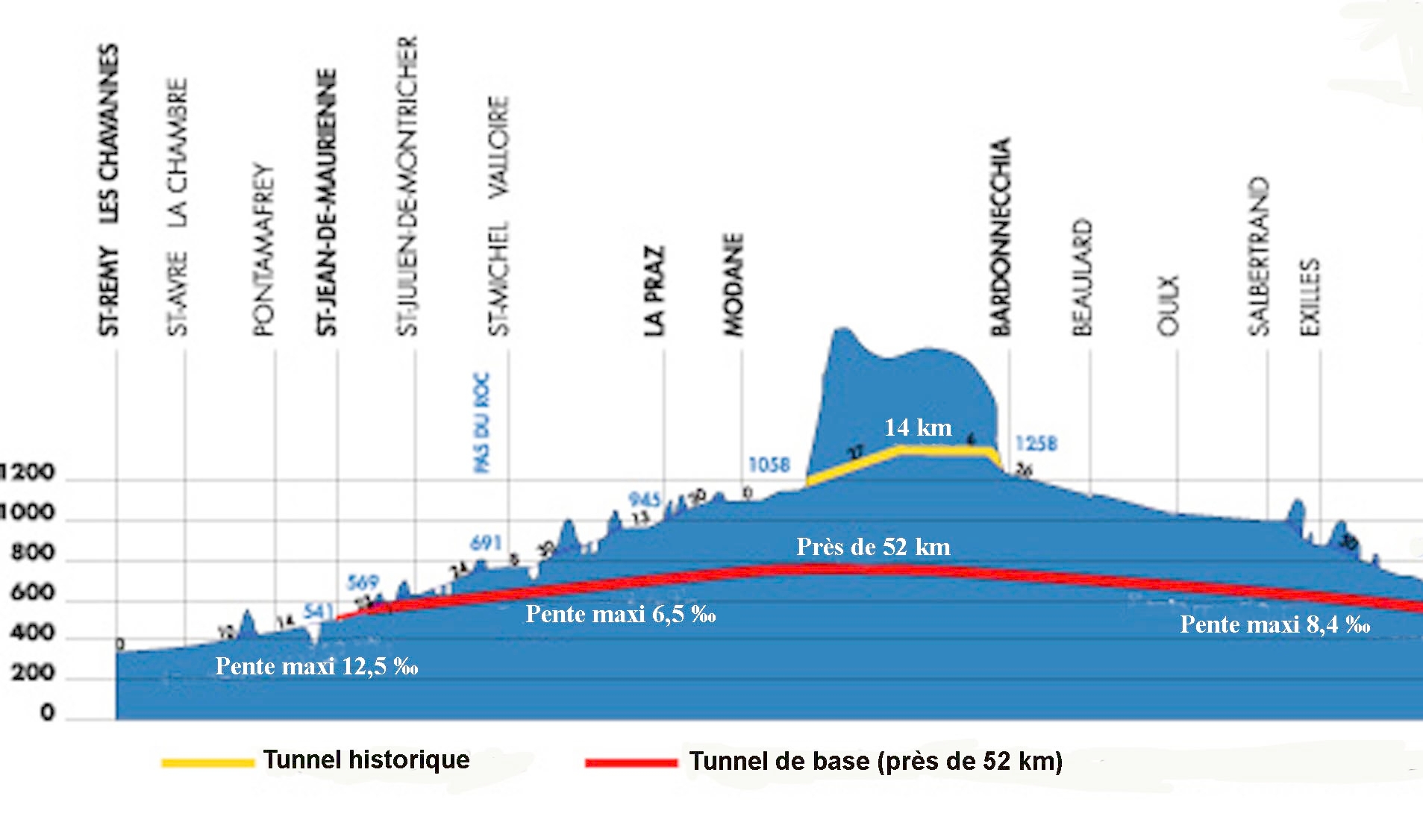 Schnitt alter und neuer Frejustunnel