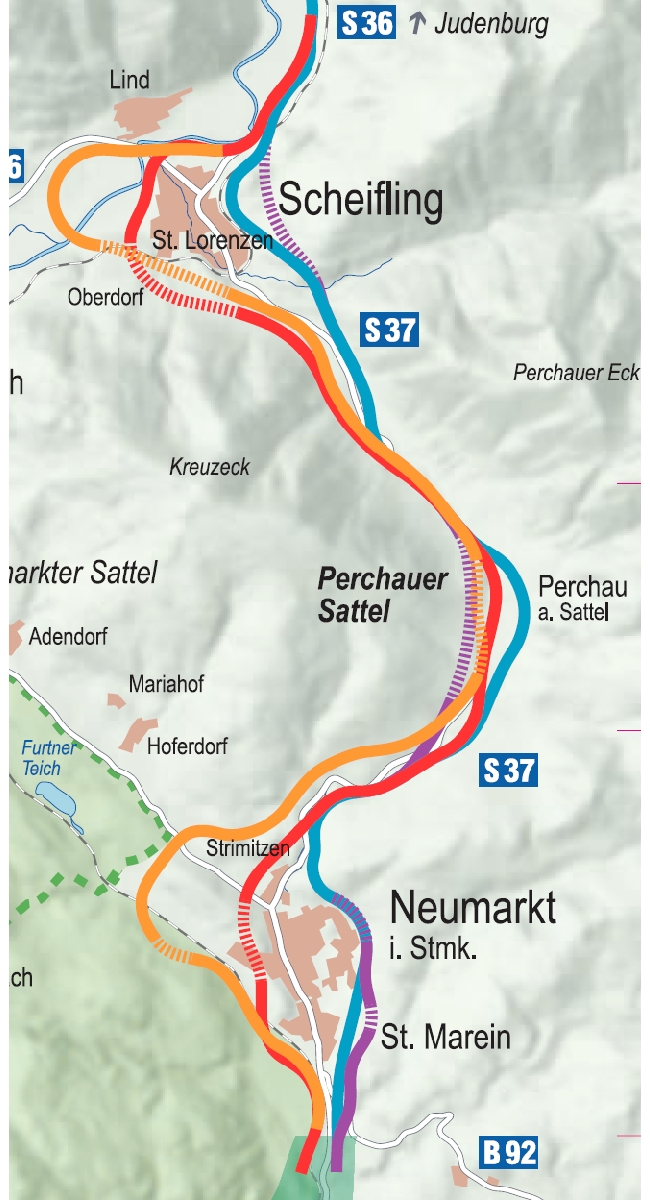 Trassierungsvarianten Autobahn Perchauer Sattel