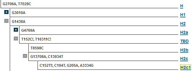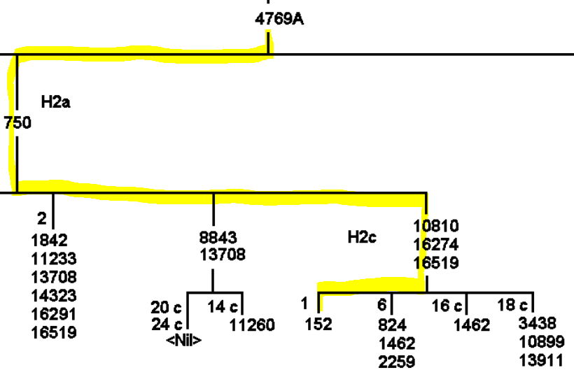 Vorstehende Mutationen (H2c1) bringen eine Nähe zur Subgruppe H2a2a bzw.