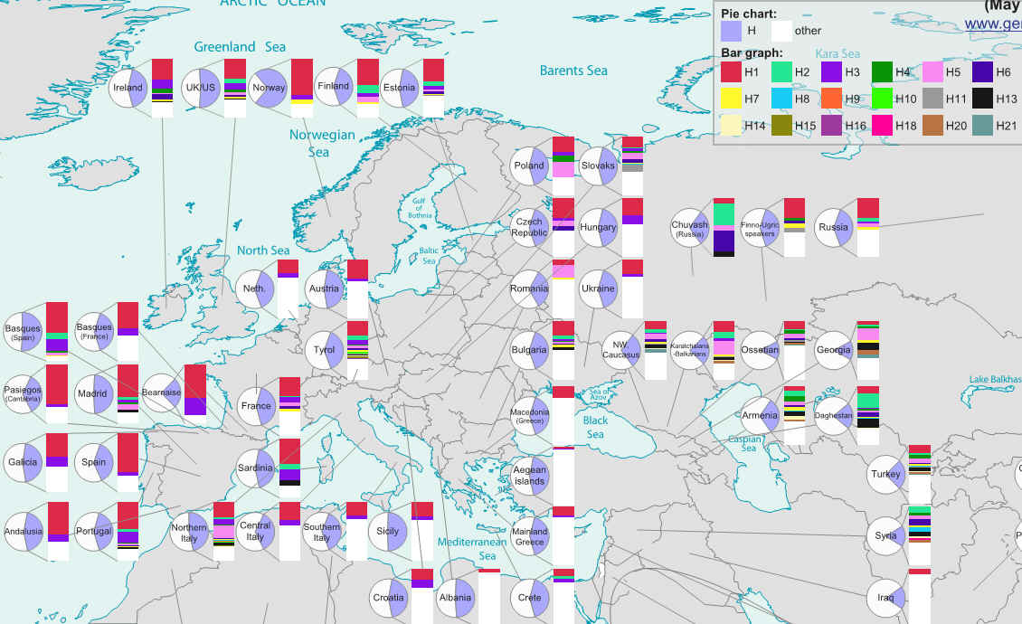 mtDNA Haplogruppe in Europa. Diese Haplogruppe ist auch in